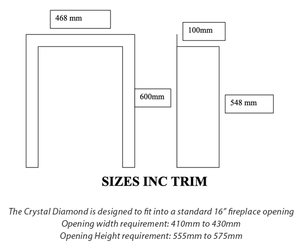 Specifically designed for installations where recess depth is limited such as modern built homes with Class 2 Pre-Cast flues. The Diamond inset gas fire from Crystal Fires has all the benefits of a full-depth appliance including a respectable heat output of up to 3.18kW but with a reduced firebox depth of only 100mm (4″).