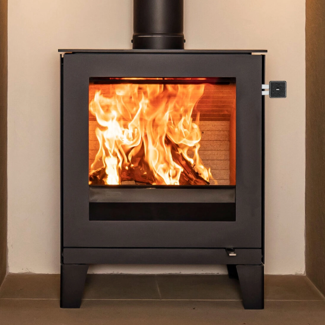 The RAIS Q-Tee 2 is a versatile wood-burning stove that combines minimalist Danish design with generous heating capacity. Despite its compact footprint, it delivers an impressive 6.5 kW nominal output, making it ideal for medium to large rooms.