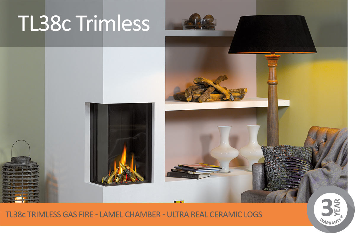 If you are looking for something a little different look no further than that the TL38 corner. This highly efficient fire allows you to view the beautiful flames from different angles. It is available either left-sided or right-sided. These innovative fires are skilfully engineered to allow a truly trimless fire. Meticulous attention has been paid to the realism of the fuel bed and flame patterns which ensures the perfect recreation of a natural living fire.